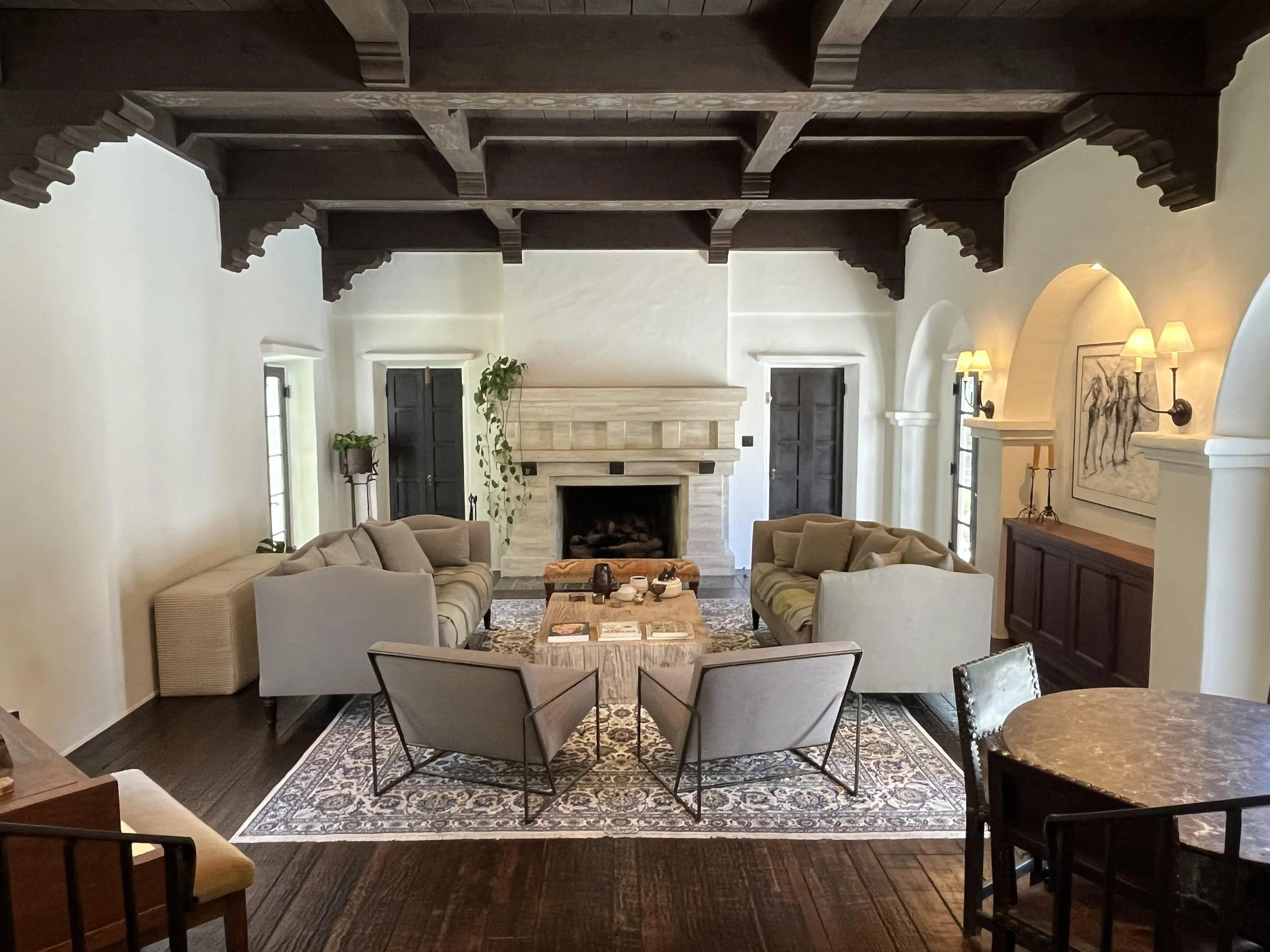Authentic Spanish home located north of Sunset. This stunning property offers elegant living and dining rooms with dramatic hand-stenciled wood ceilings, an expansive family room, and a media room with an oversized bar. Recently renovated and recognized as one of the most beautiful homes in Los Angeles, it provides a unique and versatile backdrop for film, television, and photo productions.